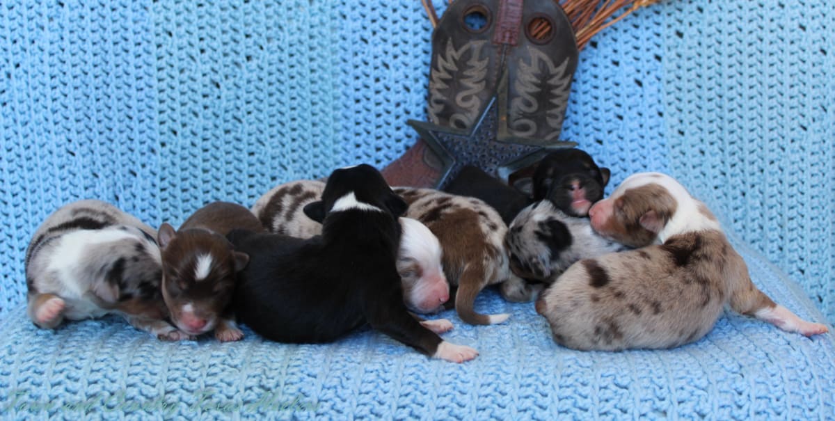 Ruby litter has arrived!!! Whelped on 6/4/2020 this litter of Australian Shepherd is sure to make you smile with 6 females, 1 male and lots of color there is something for everyone!!!